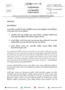 ණය ගැනුම්කරුවන් විසින් නොගෙවා පැහැර හරින ලද ණය අය කරගැනීම සඳහා එම ණය වෙනුවෙන් බැංකු වෙත උකස් කරනු ලැබ ඇති යම් දේපළක් ප්‍රසිද්ධ වෙන්දේසියේ විකිණීමට බැංකු විසින් ගනු ලබන ක්‍රියාමාර්ග සඳහා විධිවිධාන සැලසීම පිණිස 1990 අංක 4 දරන බැංකු මගින් ප්‍රදානය කරන ලද ණය අය කරගැනීමේ (විශේෂ විධිවිධාන) පනත (පරාටේ නීතිය) දෙසැම්බර් 15 දින දක්වා තාවකාලිකව අත්හිටුවීම සඳහා වන බැංකු මගින් ප්‍රධානය කරන ලද ණය අය කරගැනීමේ (විශේෂ විධිවිධාන) (සංශෝධන) පනත් කෙටුම්පතට කොන්දේසිවලට යටත්ව මුදල් කාරක සභාවේ අනුමතිය හිමිවූ බව එම නිවේදනයේ සඳහන්.